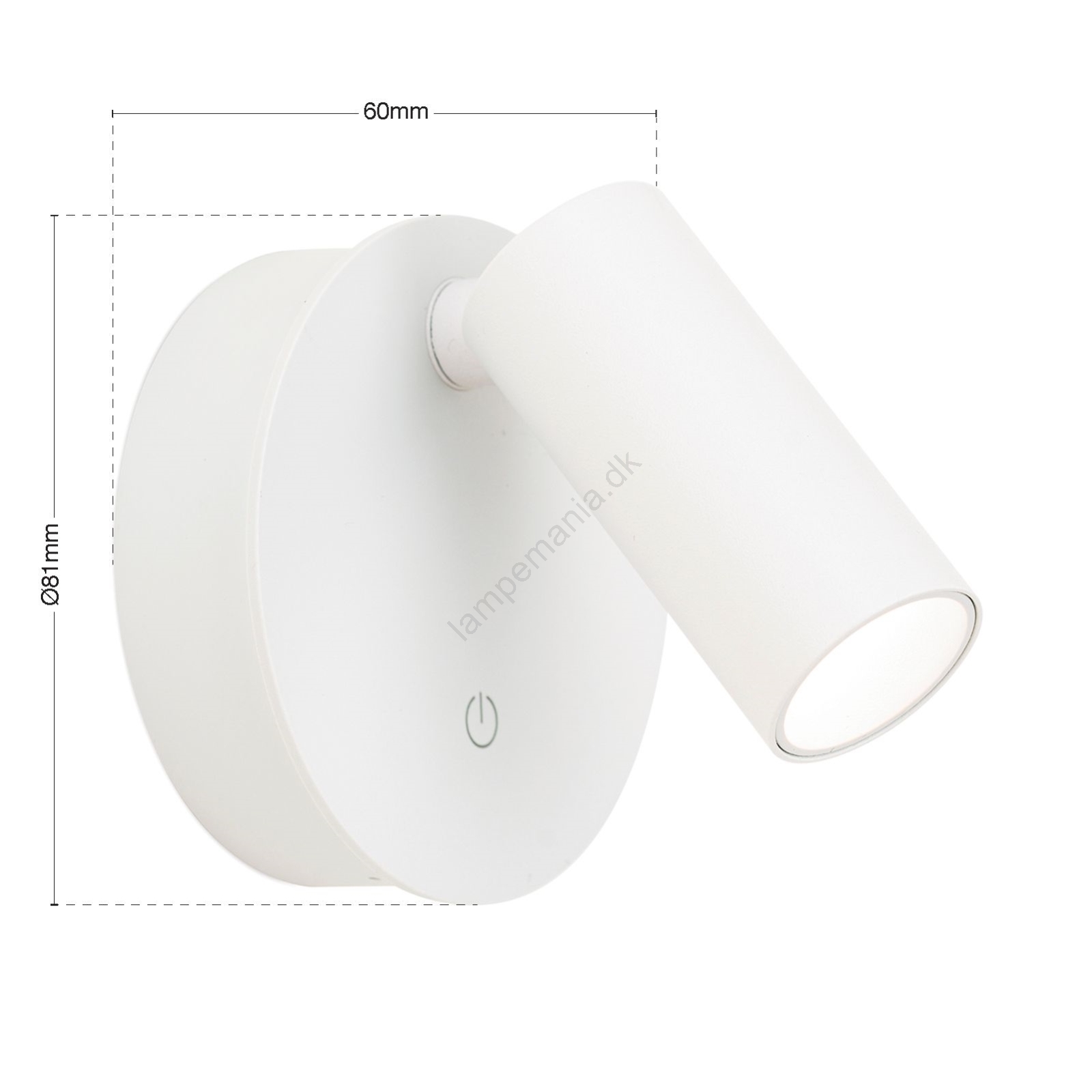LED dæmpbar genopladelig berøringsbetjent vægspot LUXY LED/1W/5V 2200 mAh 2700/3000/4000K hvid