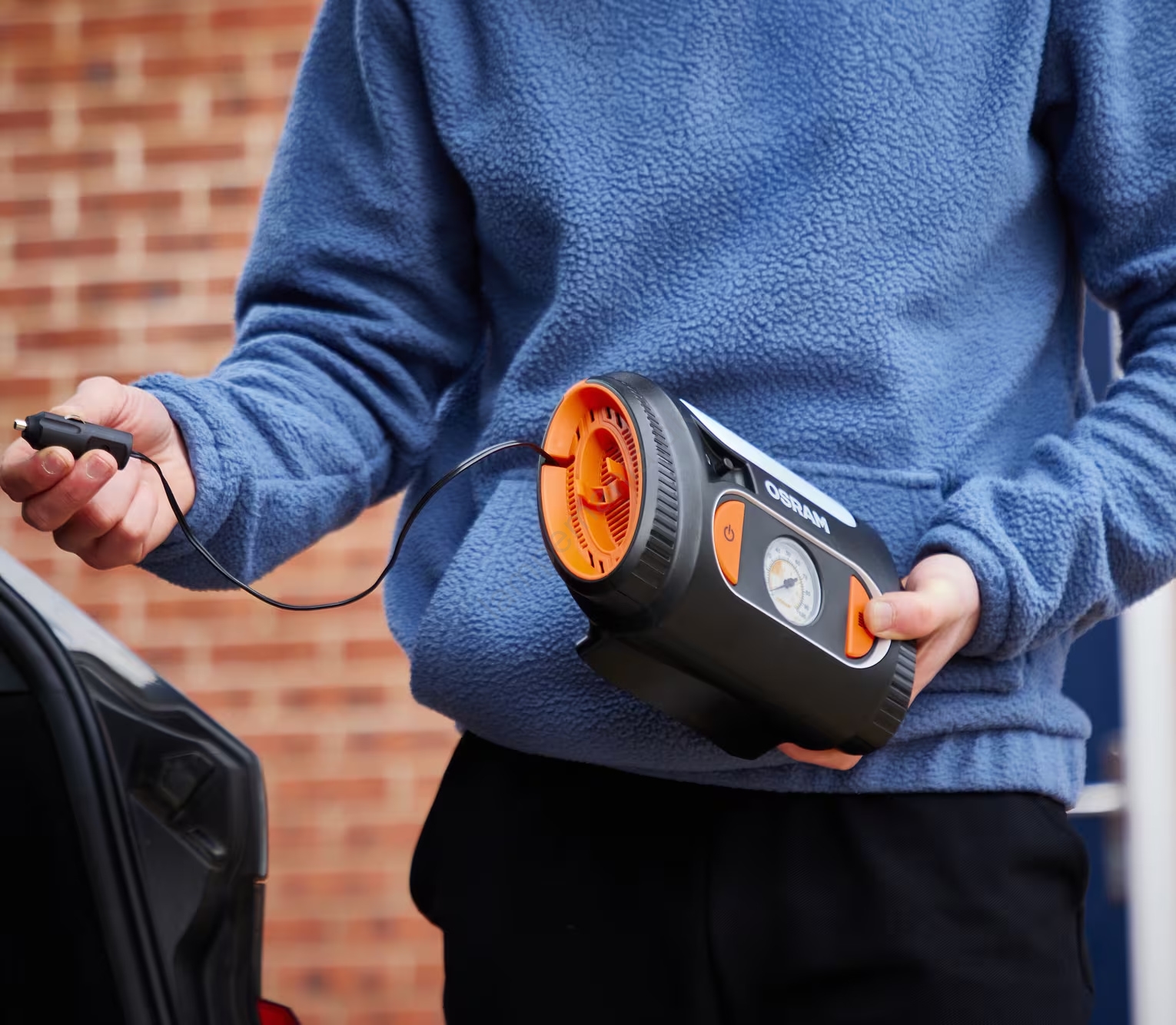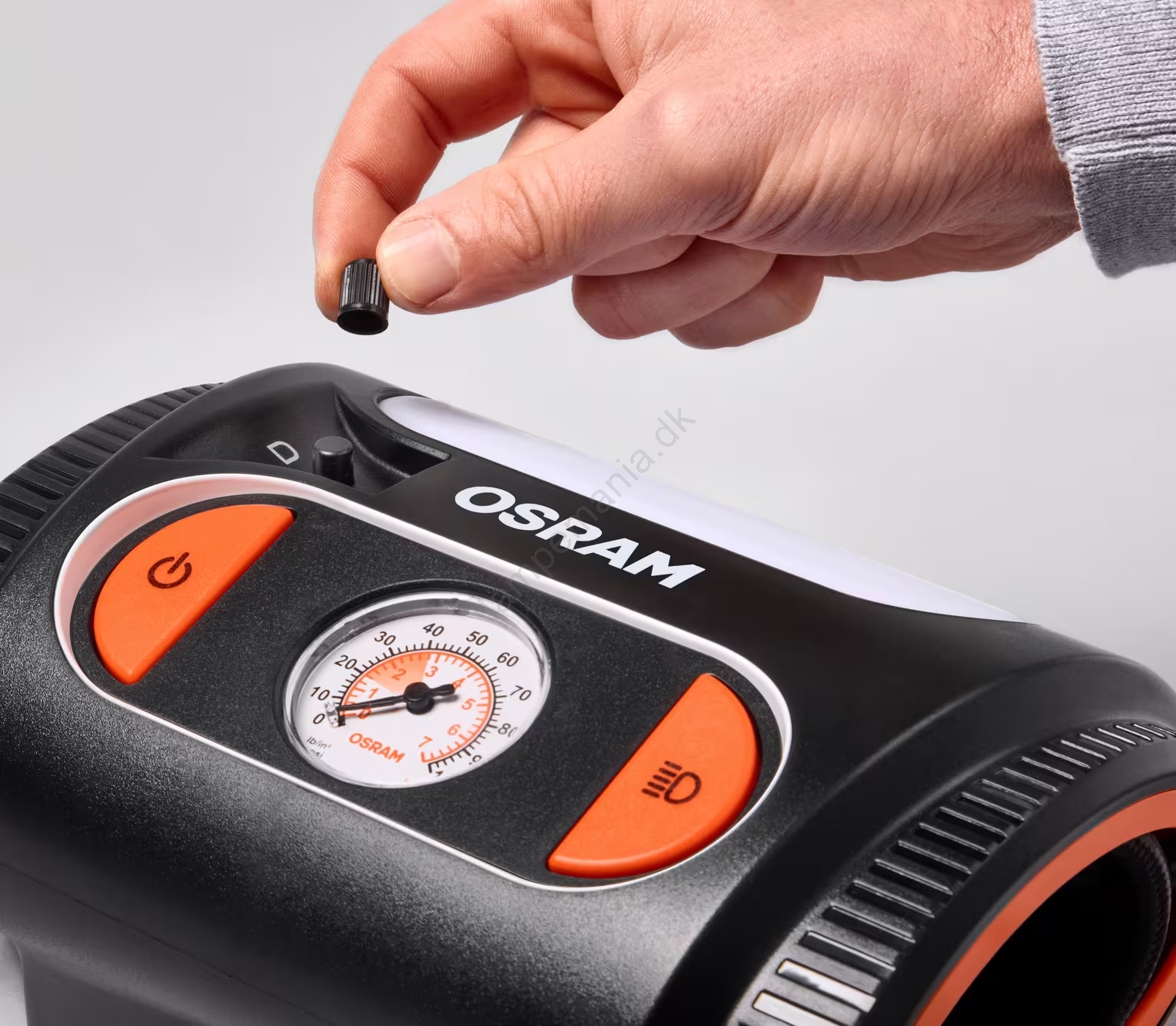 • Kompressoren OSRAM TYREinflate 2110 er udstyret med en stor, letlæselig analog trykmåler, der leverer præcise trykaflæsninger hver gang.