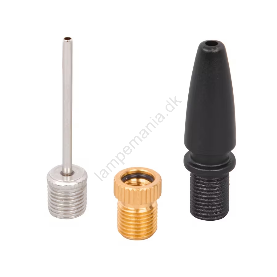 • Inde i er tre universelle ventiladaptere sikkert placeret, klar til forskellige oppustningsopgaver.