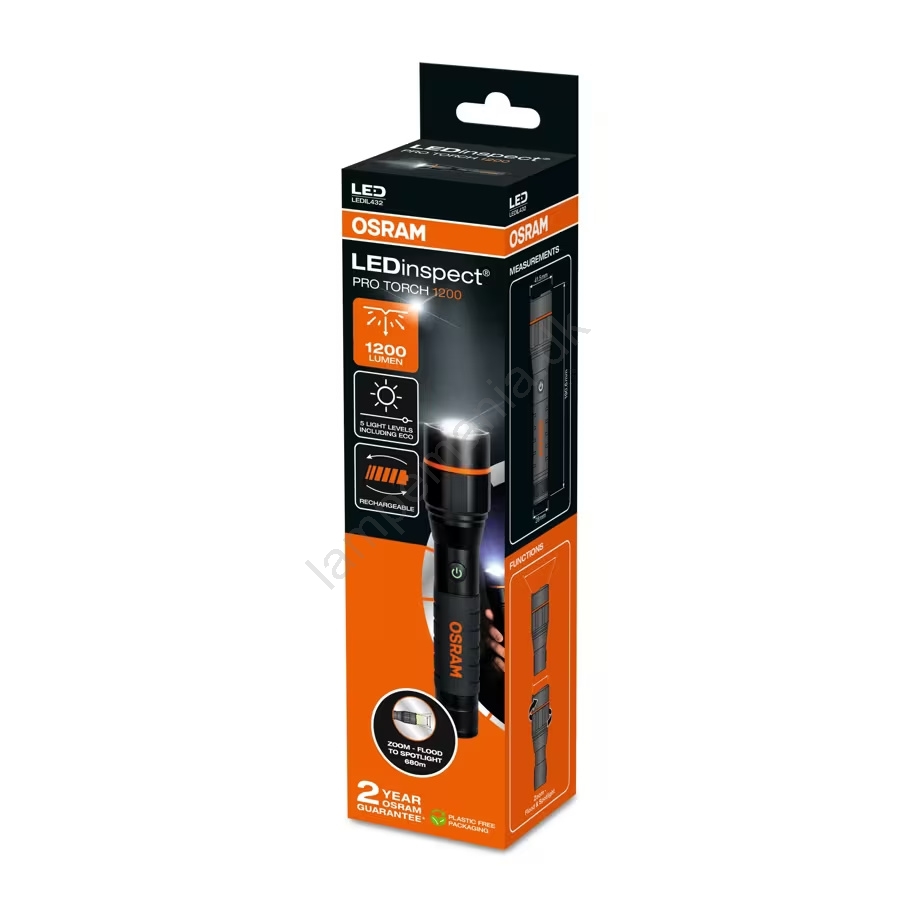 • Lommelygten leverer imponerende 1200 lumen og giver kraftigt, højintensivt lys.