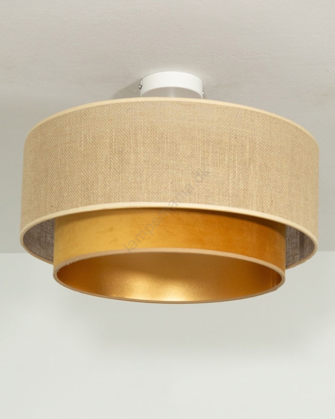Påmonteret loftlampe SARTA 1xE27/60W/230V Ø 45 cm kobberfarvet/jute
