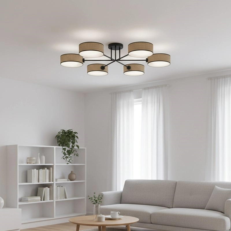 • Tætmonteret lysekrone MAGA 6xE14/10W/230V sort/brun/grå