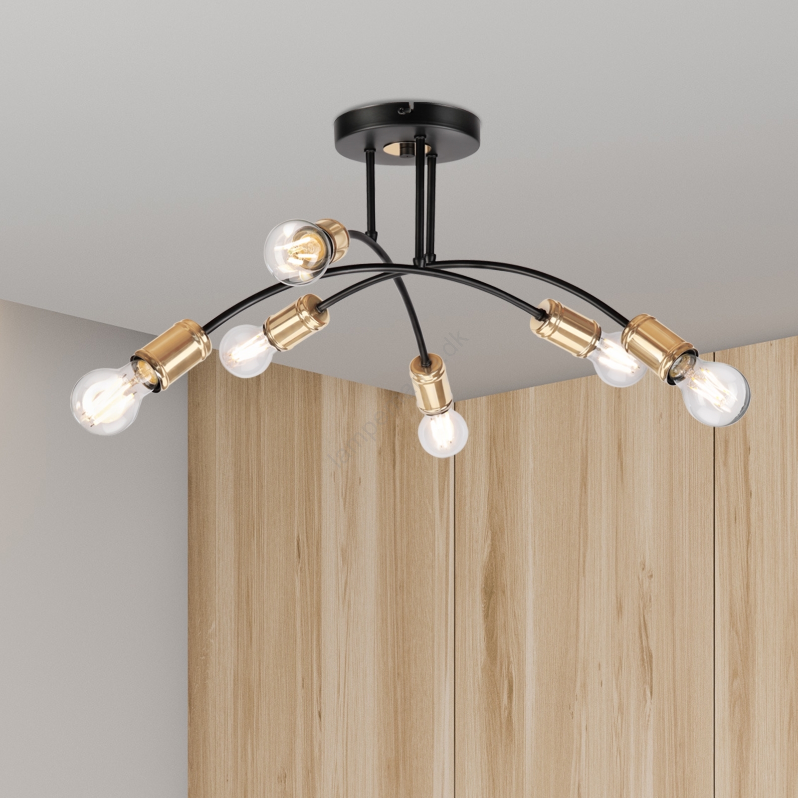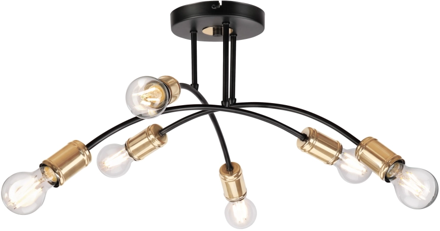 Påbygget lysekrone ANYA 6xE27/15W/230V sort/guld er kendetegnet ved et flot og funktionelt design.  En lyspære med E27-fatning passer til denne lampe. Her kan du købe andre pærer til fordelagtige priser. Du får en interessant tilføjelse til dit hjem.