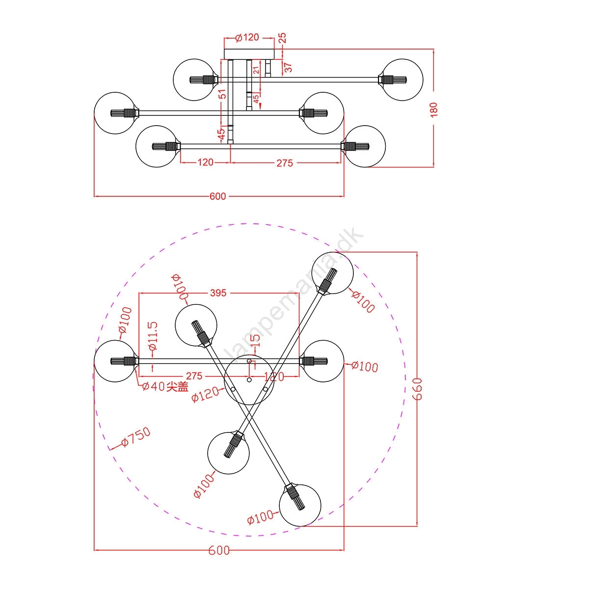 • Påbygget lysekrone DORADO 6xG9/28W/230V sort