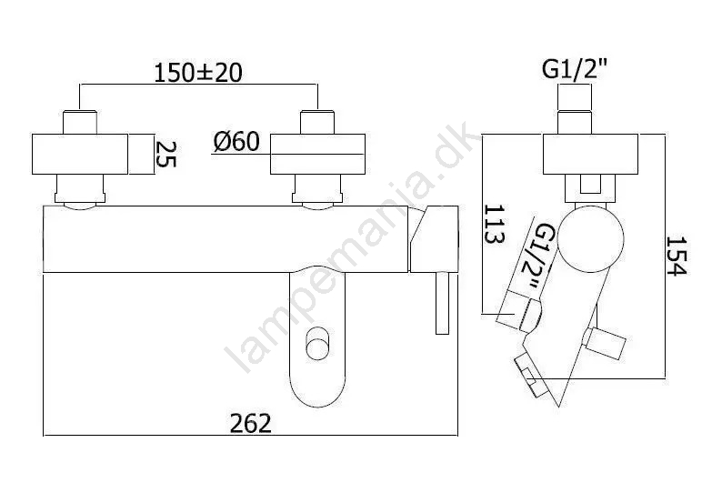 • Vægmontering, centerafstand: 150 mm.