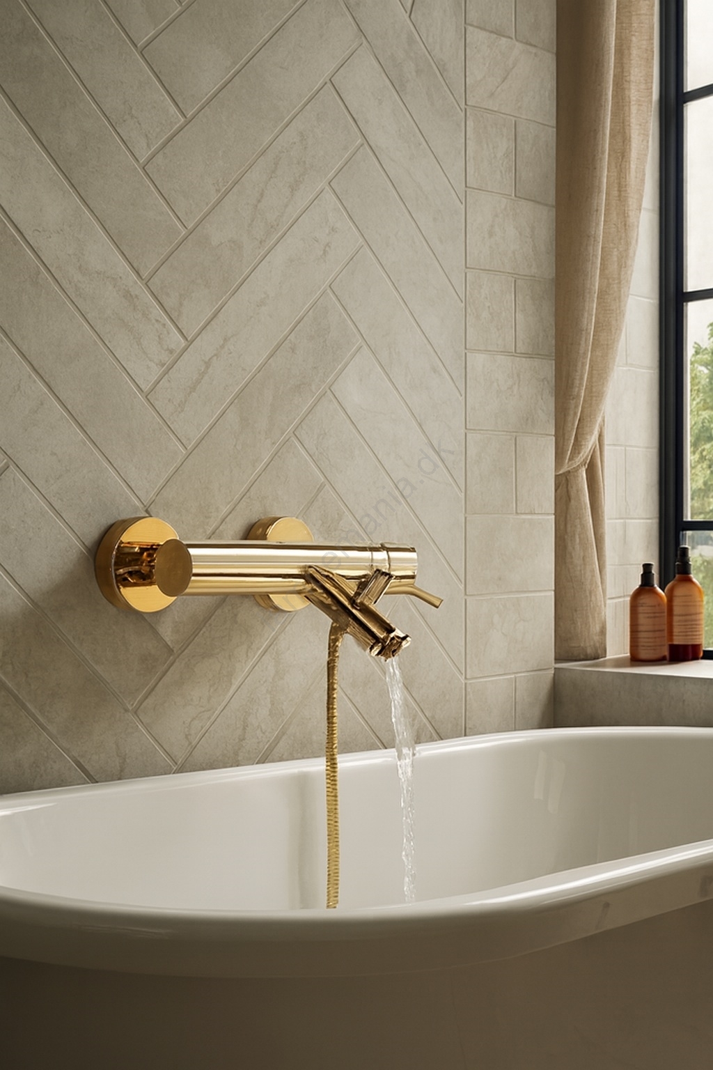 • Vægmonteret karbatteri med et greb i elegant guldfinish.