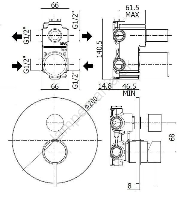 Paffoni - Brusebatteri til indbygget installation LIGHT, rustfrit stål