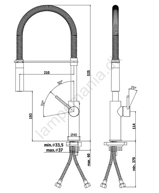 Paffoni - Køkkenarmatur LIGHT 52,5 cm med udtrækbar bruser, blank krom