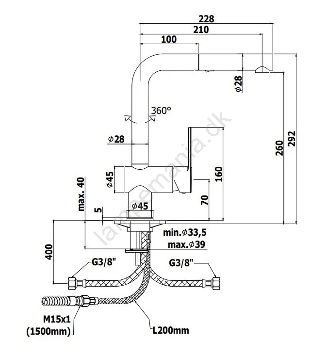 • Inkluderer tilslutningsslanger og monteringsmateriale.