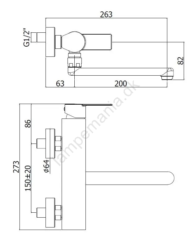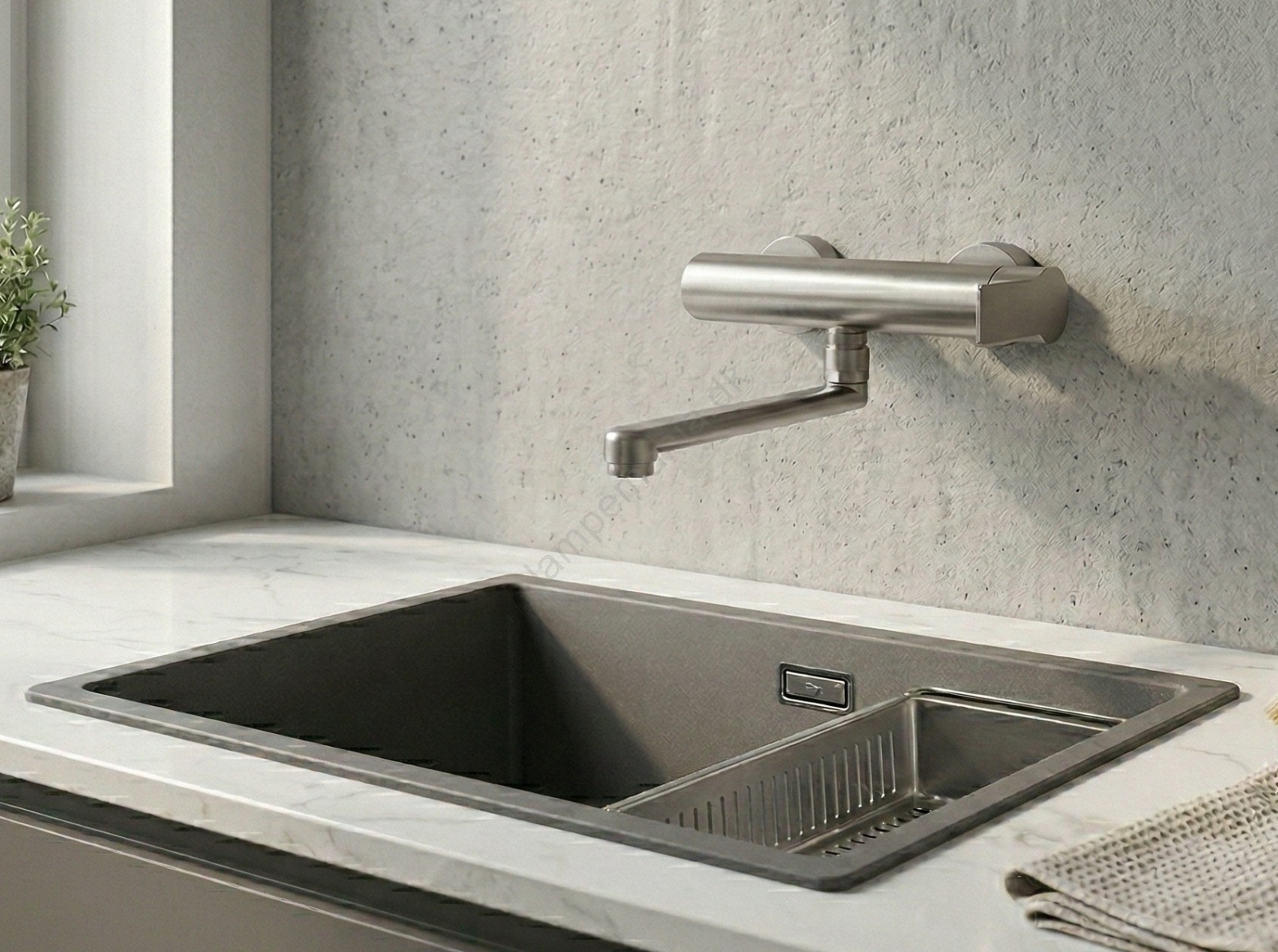 • Vægmonteret køkkenarmatur i rustfrit stål.