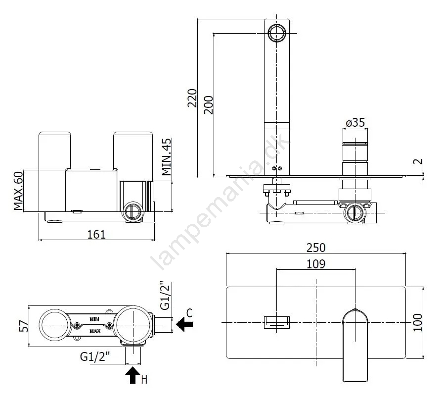 • Dette er et håndvaskarmatur beregnet til indbygget installation.