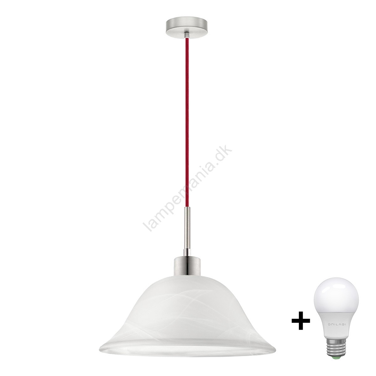 LED-lysekrone på wire 1xE27/60W/230V hvid/rød