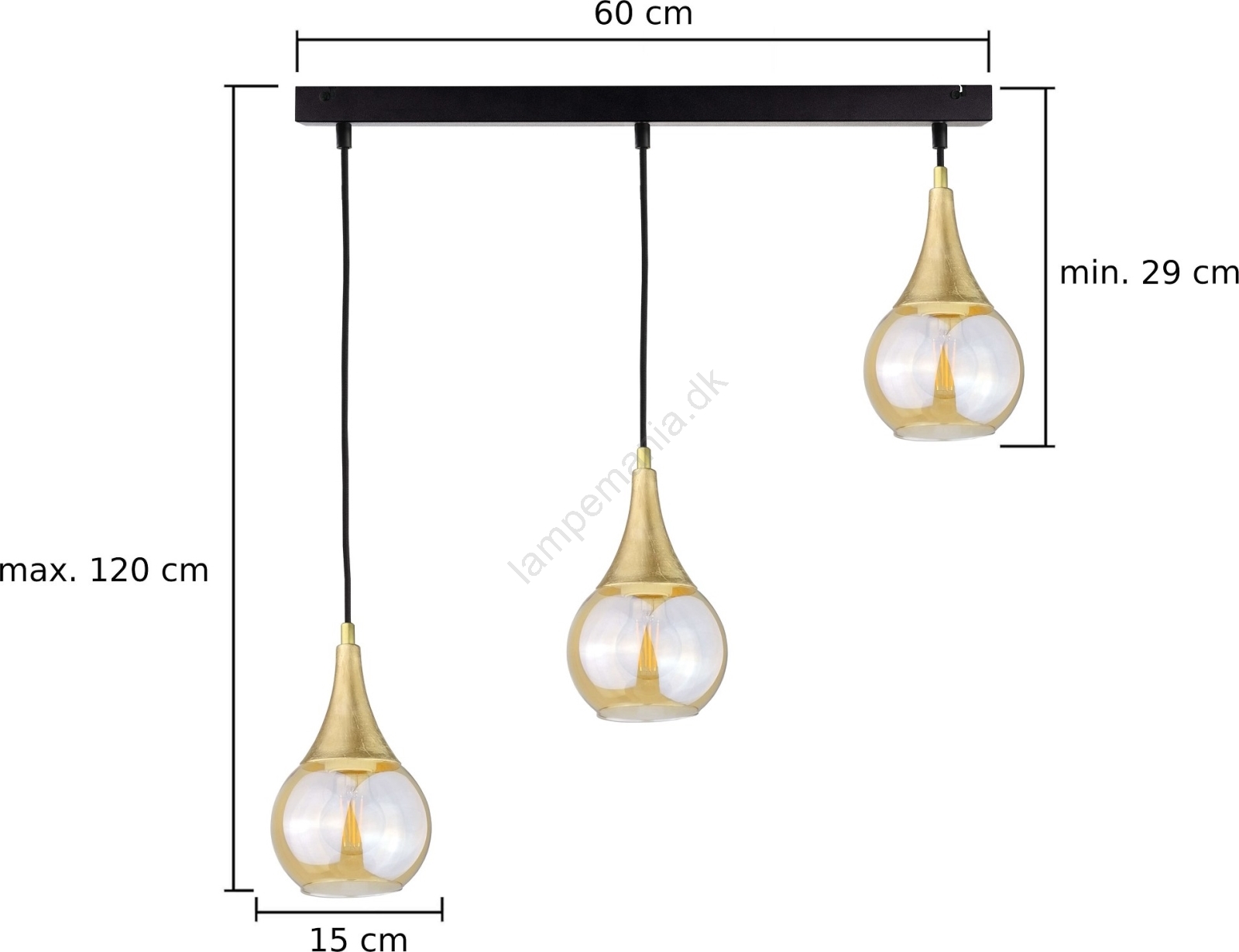 Pendel LACRIMA HONEY 3xE27/60W/230V er kendetegnet ved et flot og funktionelt design.  En lyspære med E27-fatning passer til denne lampe. Her kan du købe andre pærer til fordelagtige priser. Du får en interessant tilføjelse til dit hjem.