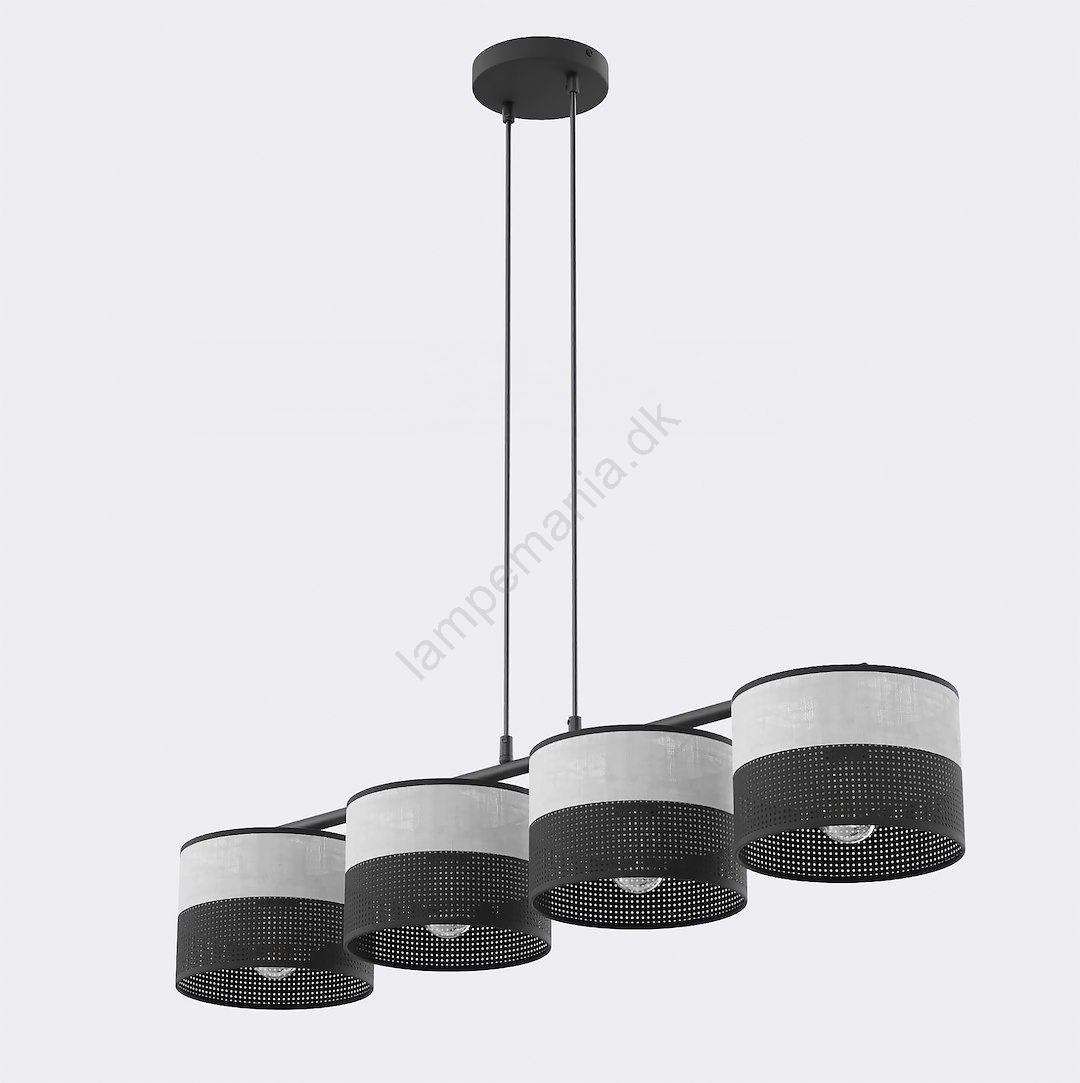 Pendel med ledning KARBON 4xE27/15W/230V sort/grå er kendetegnet ved et flot og funktionelt design.  En lyspære med E27-fatning passer til denne lampe. Her kan du købe andre pærer til fordelagtige priser. Du får en interessant tilføjelse til dit hjem.