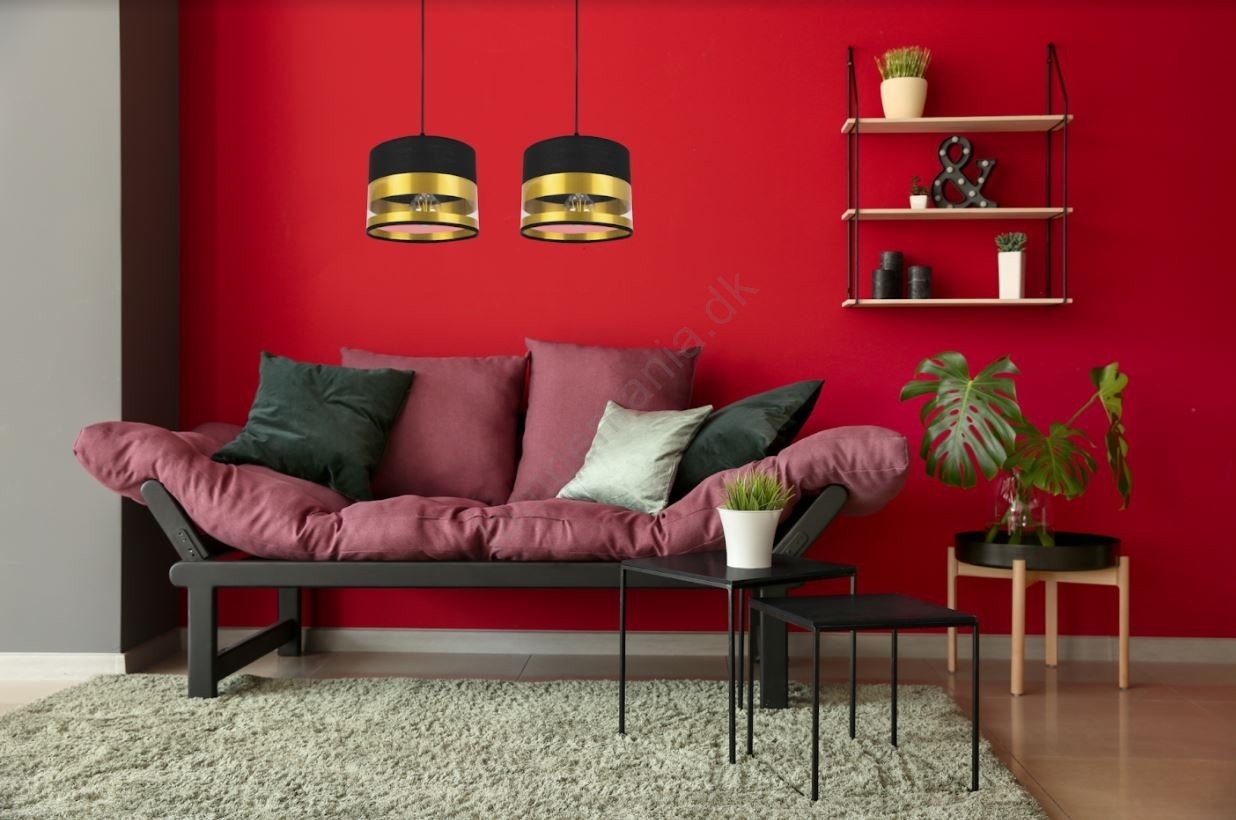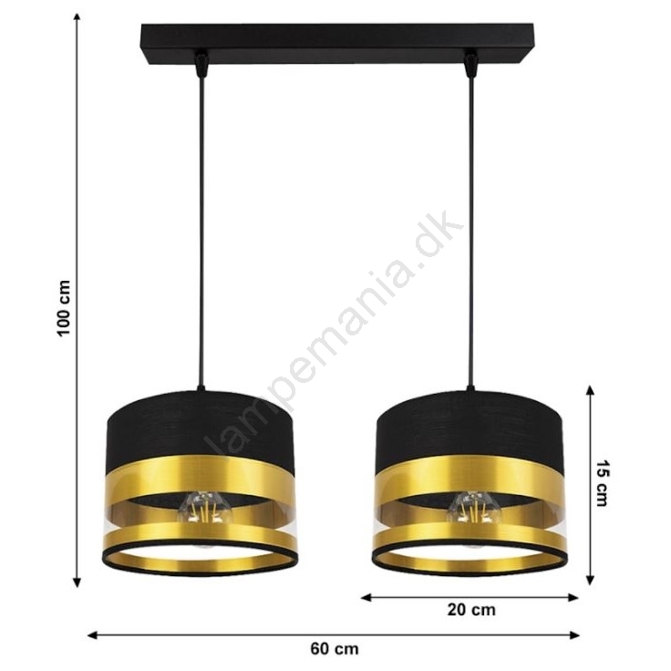 Pendel MILO 2xE27/60W/230V gylden/sort er kendetegnet ved et flot og funktionelt design.  En lyspære med E27-fatning passer til denne lampe. Her kan du købe andre pærer til fordelagtige priser. Du får en interessant tilføjelse til dit hjem.
