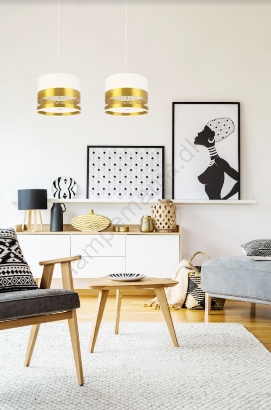 Pendel MILO 2xE27/60W/230V gylden er kendetegnet ved et flot og funktionelt design.  En lyspære med E27-fatning passer til denne lampe. Her kan du købe andre pærer til fordelagtige priser. Du får en interessant tilføjelse til dit hjem.