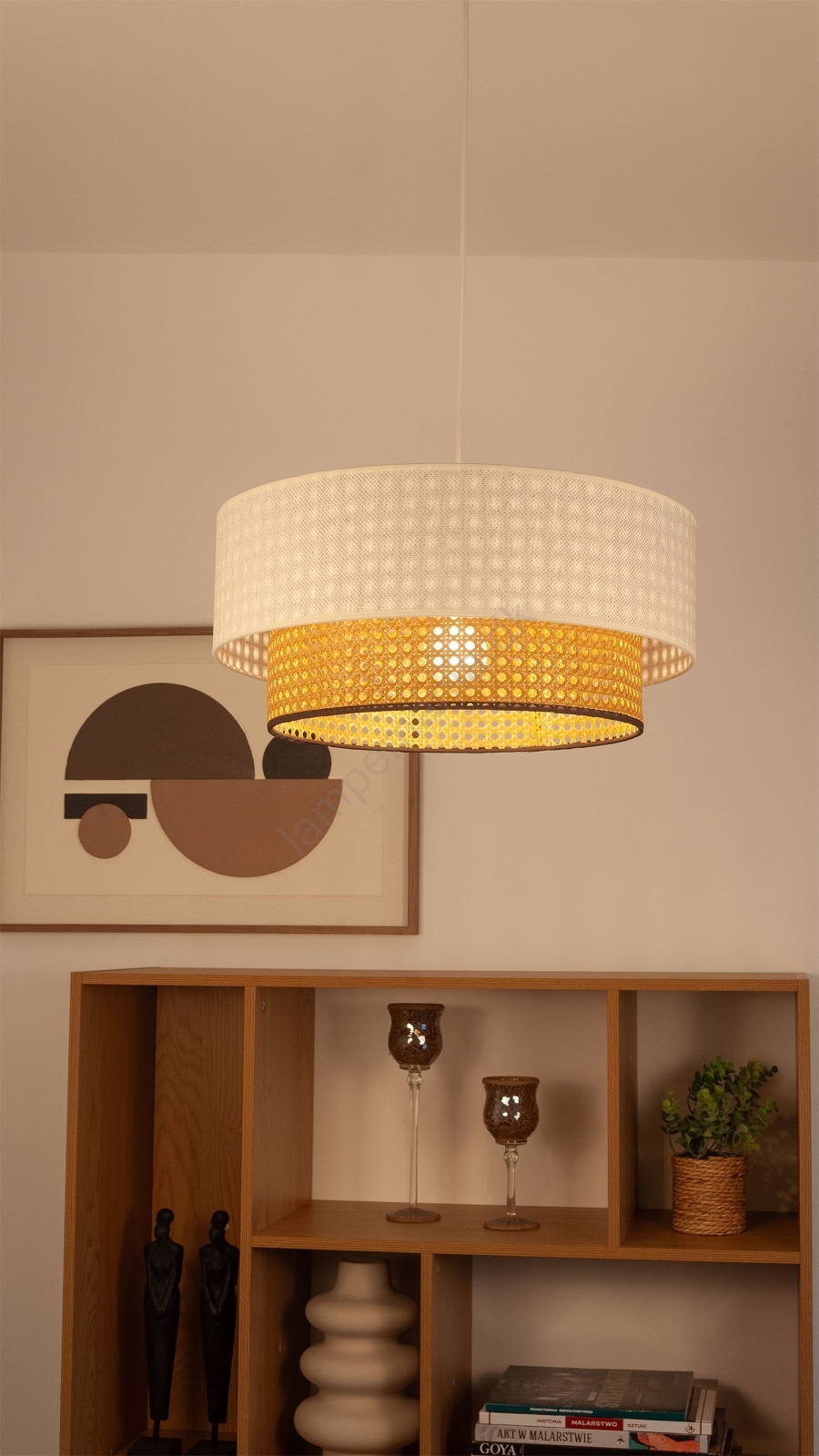 • Pendellampe på ledning NATIA 1xE27/60W/230V Ø 45 cm hvid/brun