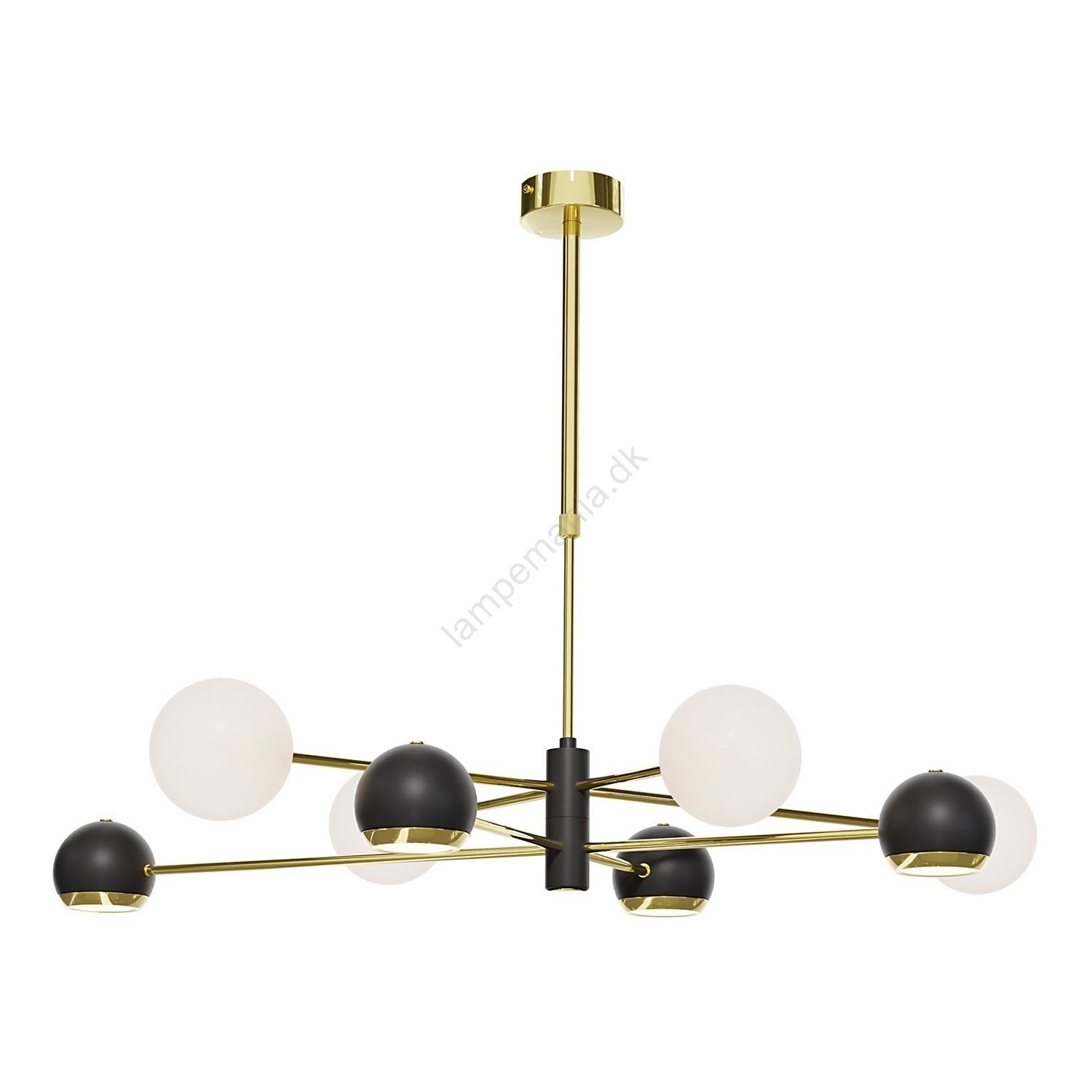 Jupiter 1971 - Lysekrone på stang MOKA 4xGU10/10W/230V + 4xG9/10W/230V guld/sort/hvid er kendetegnet ved et flot og funktionelt design.  En lyspære med G9, GU10-fatning passer til denne lampe. Her kan du købe andre pærer til fordelagtige priser. Du får en interessant tilføjelse til dit hjem.