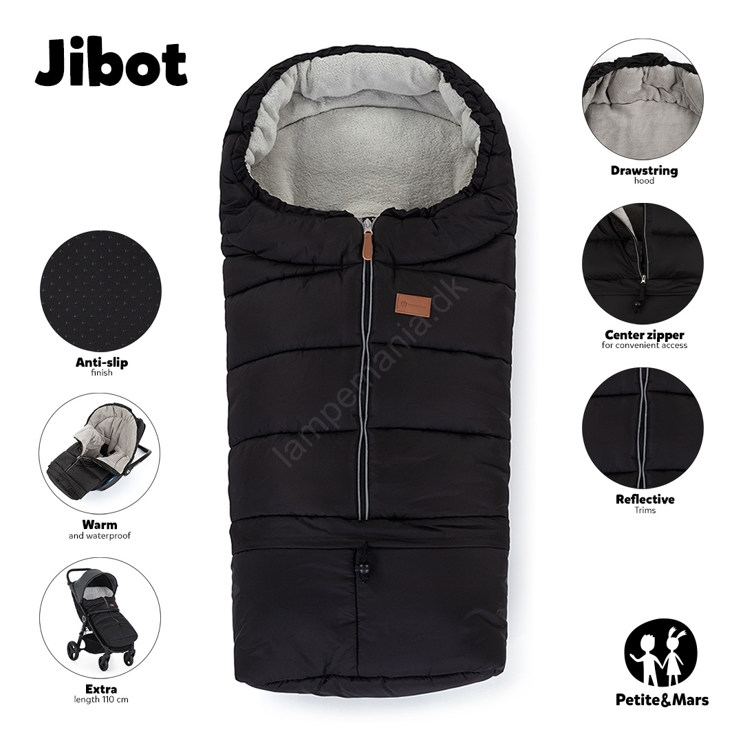 • Varm forlængelig sovepose Jibot 3-i-1 til babyen og varme handsker Jasie til barnevognen til mor.