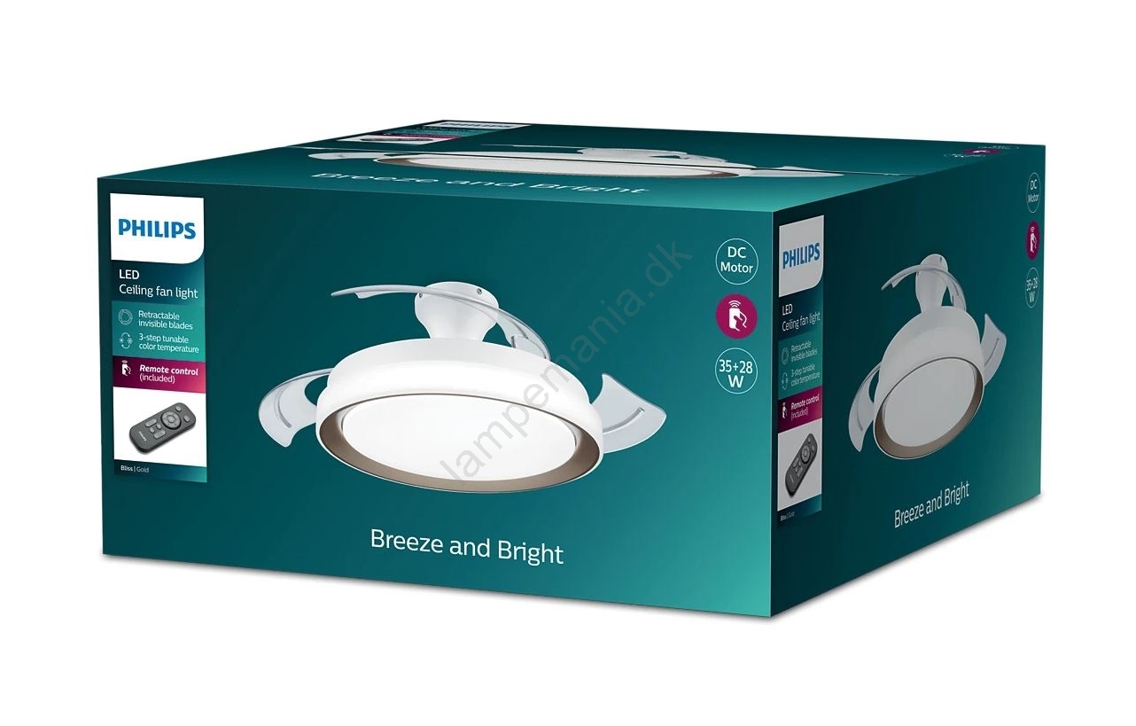 • Philips - LED loftlampe med ventilator LED/35W/230V 5500/4000/2700K + fjernbetjening guldfarvet