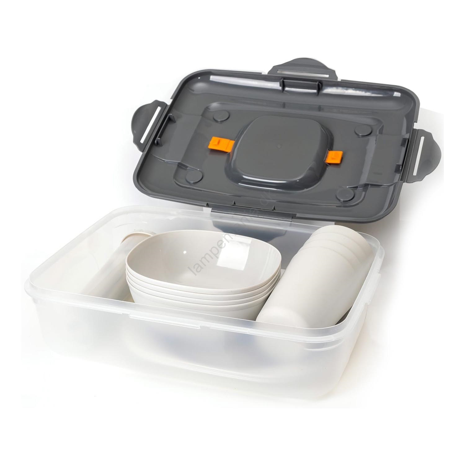 • Takket være det kompakte design og boksen passer hele sættet nemt i bilen, i rygsækken eller på cyklen — ideelt til ture, udflugter, picnic og ferier.