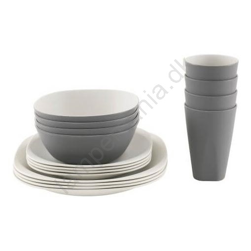• Indhold af sættet: 4 små tallerkener, 4 store tallerkener, 4 skåle, 4 krus, bestik — alt designet, så det passer i en kompakt kuffert eller rygsæk.