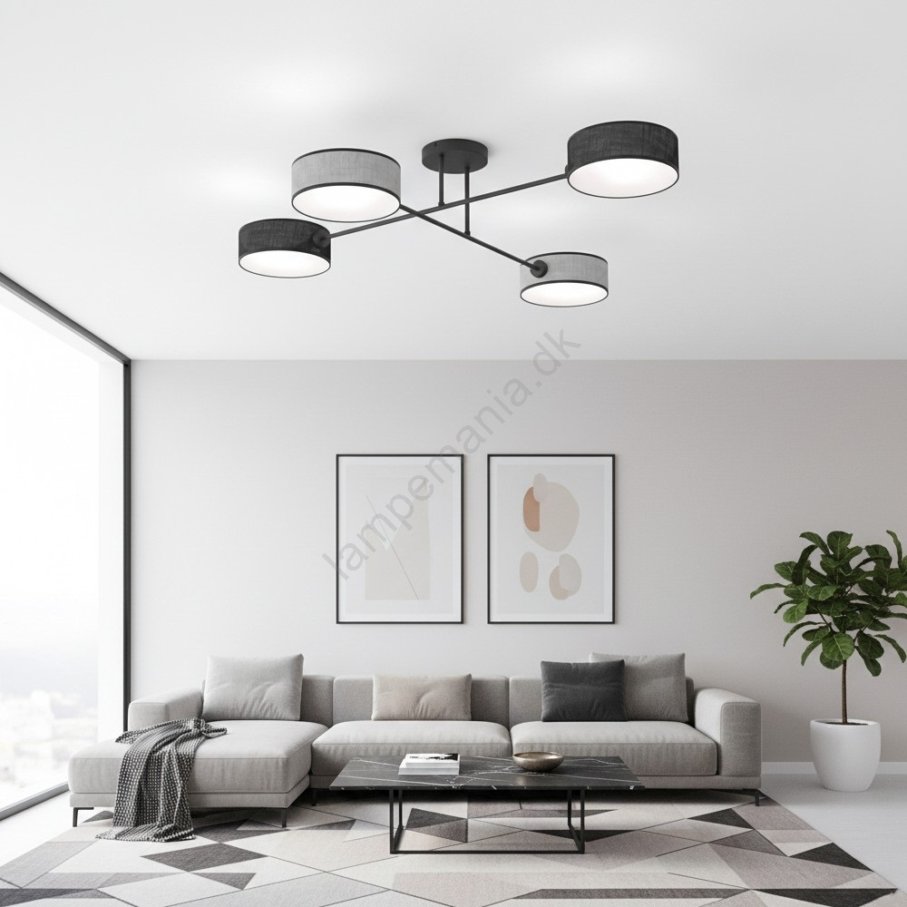 Plafondlampe MAGA 4xE14/10W/230V sort/grå er kendetegnet ved et flot og funktionelt design.  En lyspære med E14-fatning passer til denne lampe. Her kan du købe andre pærer til fordelagtige priser. Du får en interessant tilføjelse til dit hjem.