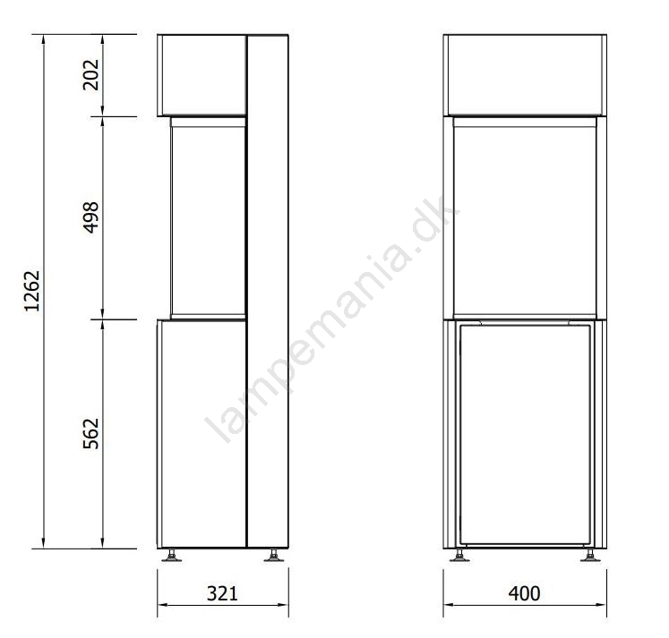 • Pejsens dimensioner: 126,2 x 40 x 32,1 cm.