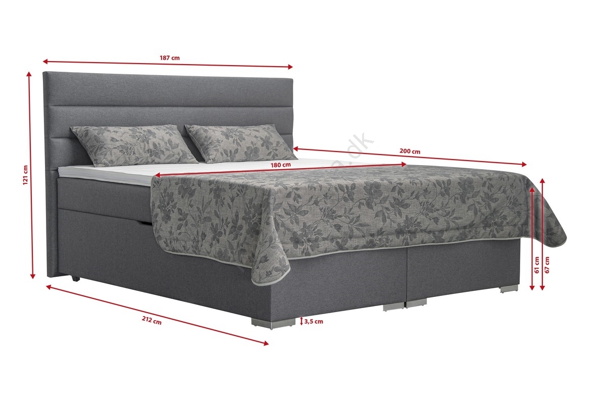 Polstret seng med opbevaring og madrasser med topmadras NEW BOLERO 180x200 cm grå