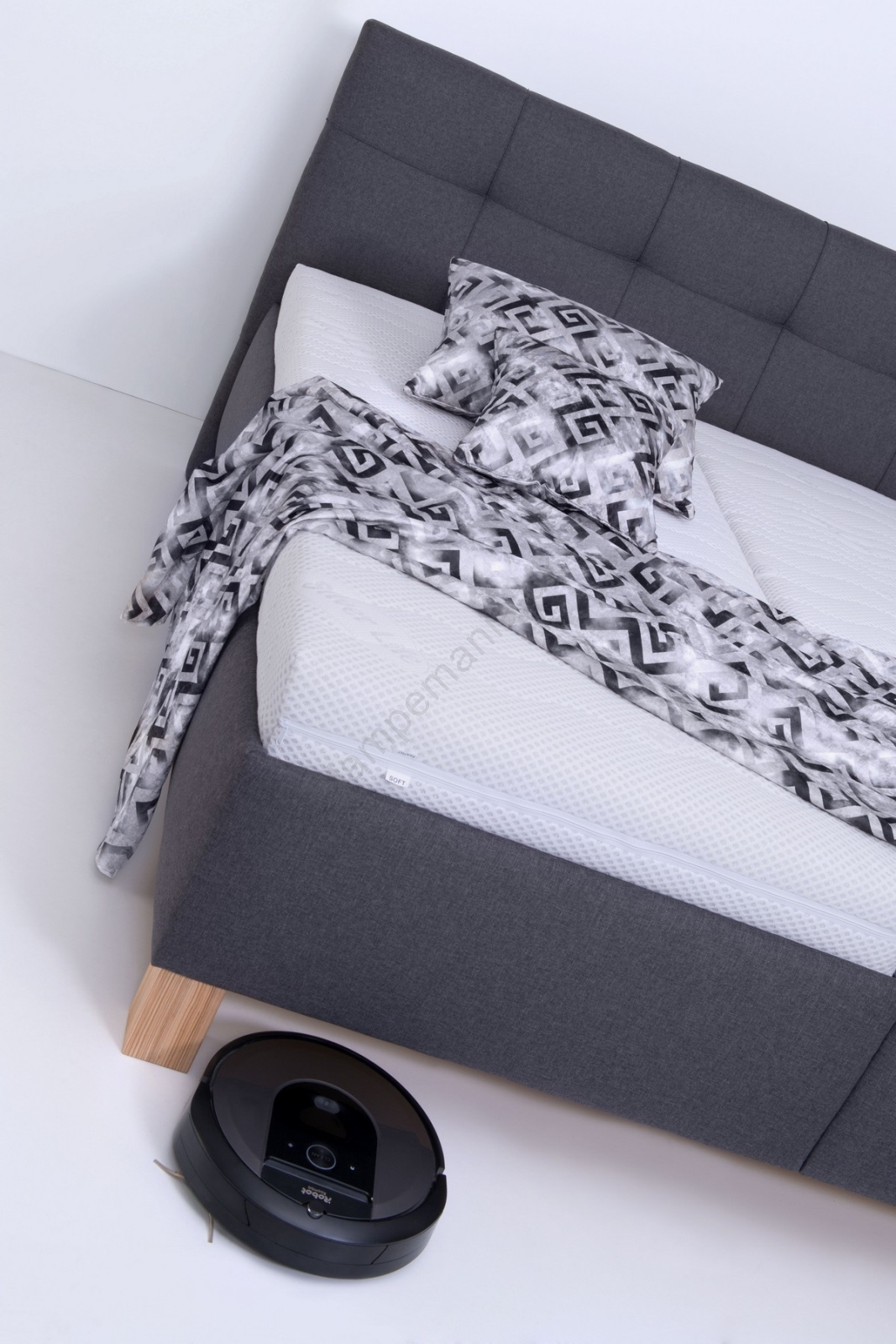• Polstret seng med madras og praktisk opbevaringsrum MARIA 180x200 cm grå