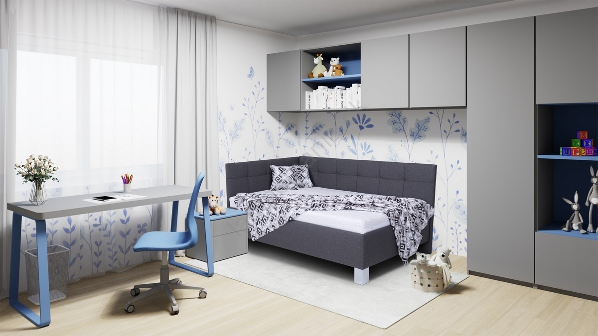 MARIA PETITE polstret seng med madras og opbevaringsplads 120x200 cm grå