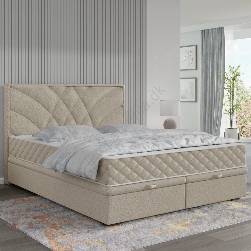 • Polstret seng GINA 180x200 cm med madrasser og opbevaringsplads, beige