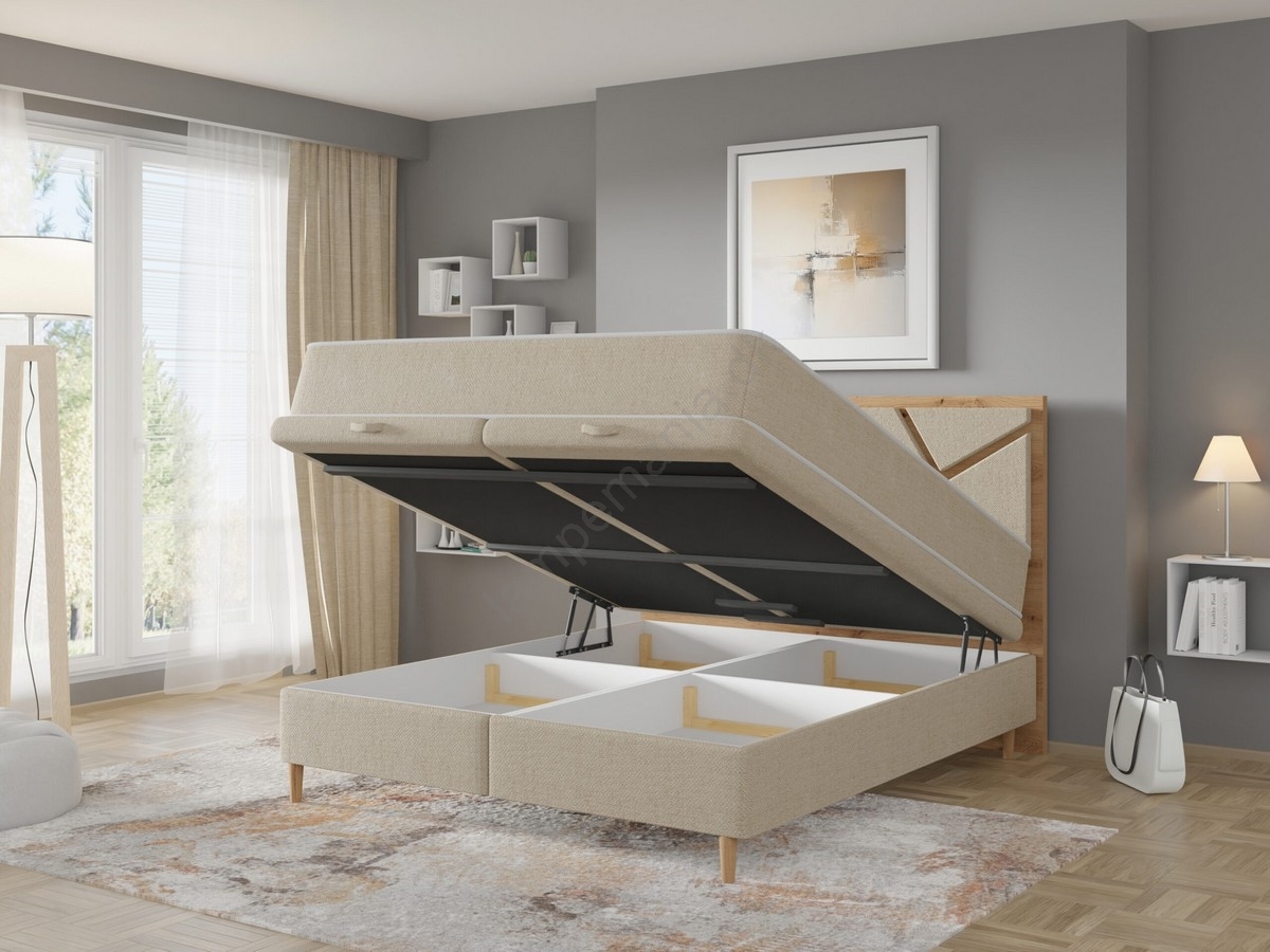 Polstret seng NAOMI 180x200 cm med madrasser og opbevaringsplads, beige