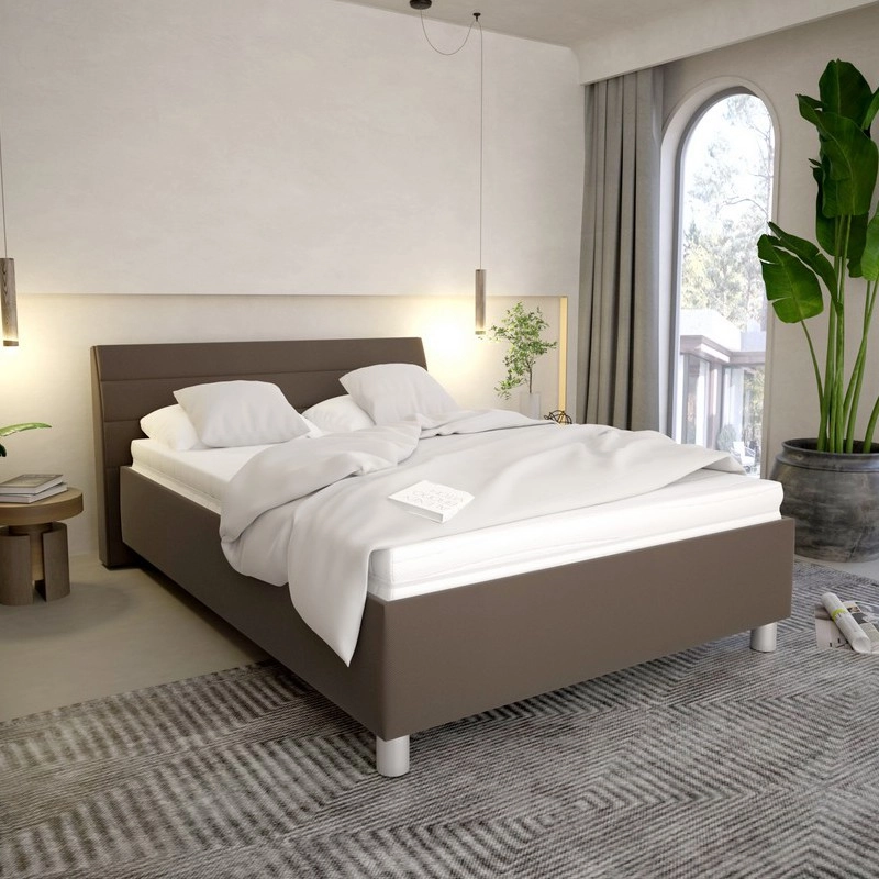 Polstret seng med opbevaring og madras DALMA 140x200 cm grå/brun