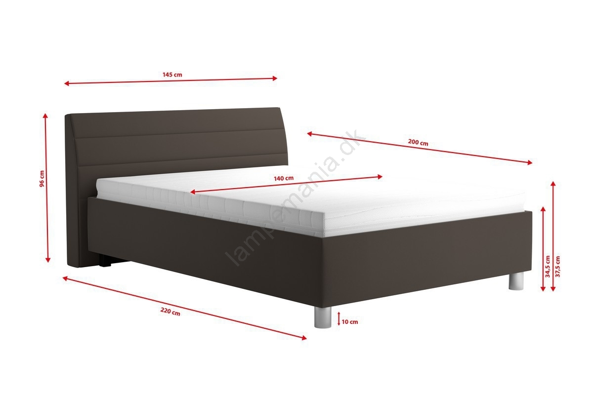 • Sengen er udstyret med en mekanisk justerbar lamelbund P12, som indeholder 28 lameller monteret i svingbare gummibøsninger.
