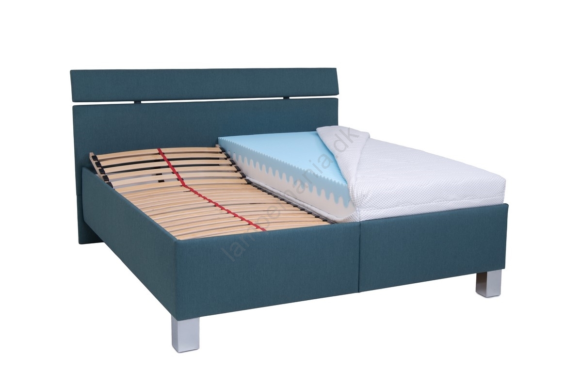 • Komfortabel delt sengegavl - betrukket med behageligt stof og PUR-skum for blødhed og komfort, ideel f.eks. til læsning.