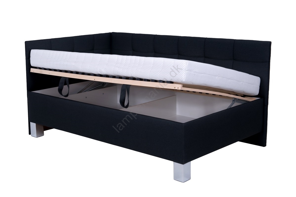 • Sengen er udstyret med et sideåbnings-/løftesystem for nem adgang til et rummeligt opbevaringsrum, som desuden er forsynet med ventilationsgitre for bedre luftcirkulation.