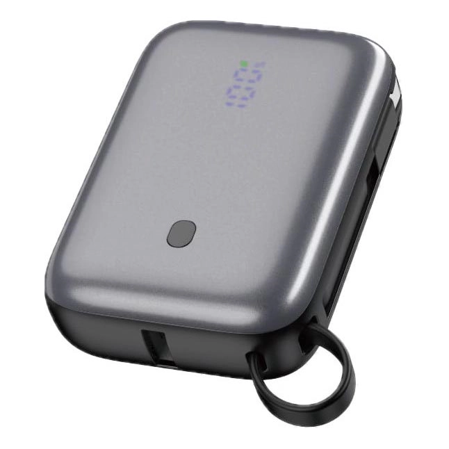 • Powerbanken har et indbygget opviklingsbart USB-C kabel.