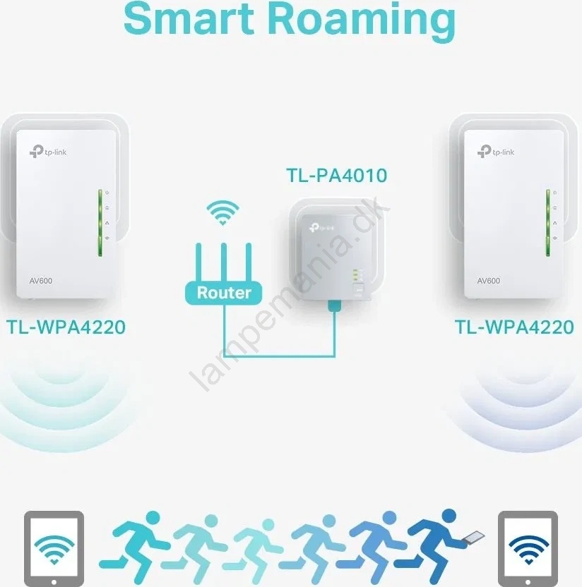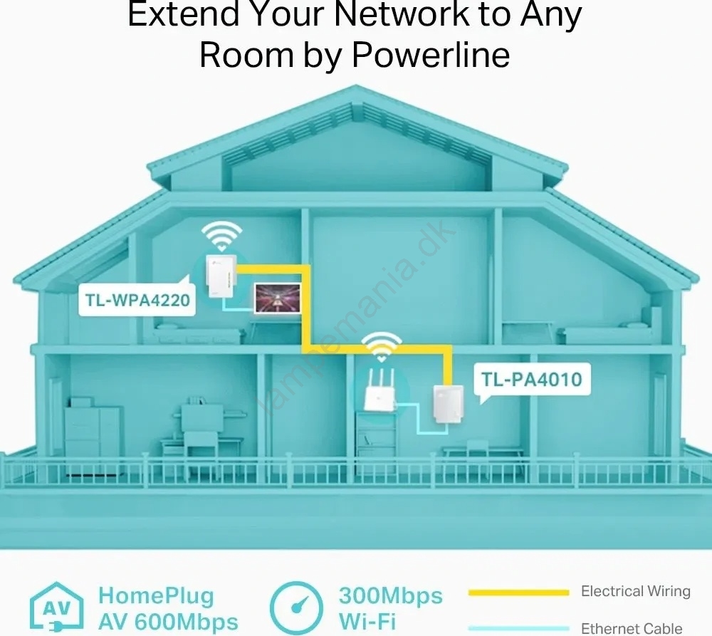 • Overførselshastighed op til ~600 Mb/s over el-nettet og op til ~300 Mb/s via Wi-Fi.