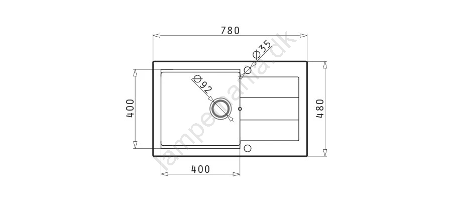 • Afløbsdiameter: 92 mm.