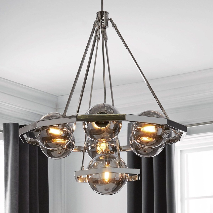 Quintiesse - Pendel på stang HARPER 7xE14/60W/230V Ø 81,3 cm blank krom/røget glas er kendetegnet ved et flot og funktionelt design.  En lyspære med E14-fatning passer til denne lampe. Her kan du købe andre pærer til fordelagtige priser. Du får en interessant tilføjelse til dit hjem.