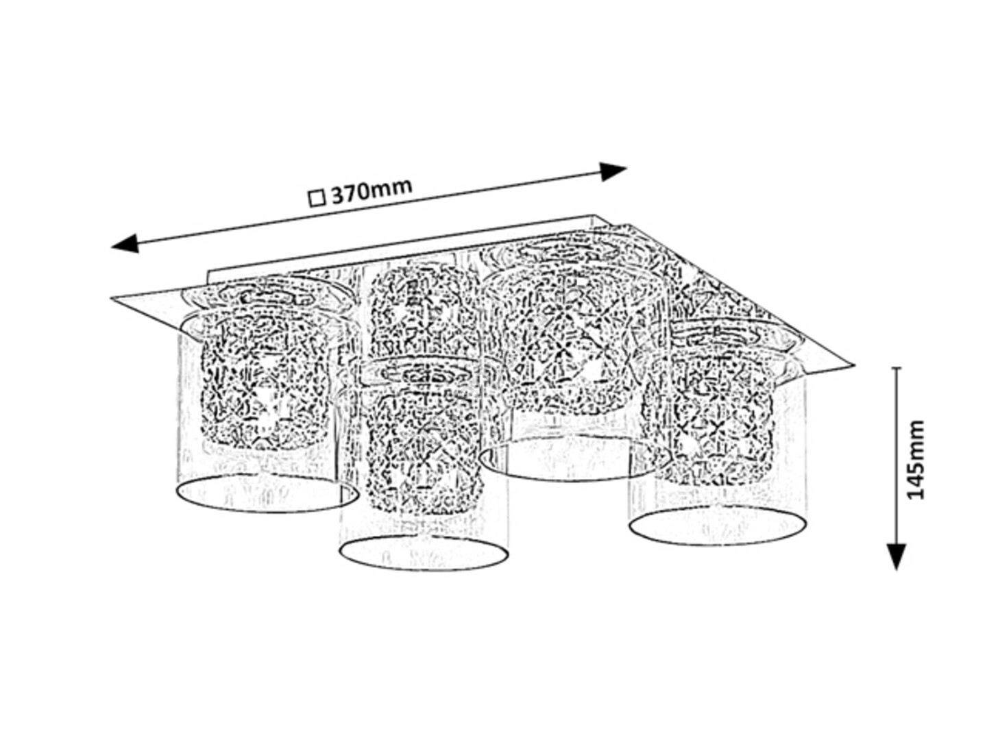 Det moderne og elegante loftsarmatur Duchess med 4 pærer vil være et storslået supplement til indretningen af din stue, spisestue eller soveværelse. Det kromfarvede metalarmatur er udstyret med gennemsigtige cylindriske glasskærme, som fremhæver den smukke krystaludsmykning inde i armaturets hoveder. Denne model kan monteres i loftet ved hjælp af en stor firkantet dekorativ base. Duchess-armaturet kan anvendes med fire pærer, hver med en effekt på op til 40W. Sokkeltypen er G9. Afhængigt af dine præferencer kan du vælge en varm eller naturlig hvid lyskilde til denne model. Hvis armaturet placeres i soveværelset, anbefaler vi at bruge pærer med varmt hvidt lys, som med garanti vil hjælpe med at skabe en hyggelig og intim atmosfære. Målene på loftsarmaturet Duchess er 370x370 mm, og afstanden fra loftet er 145 mm. Denne model leveres uden lyskilder.