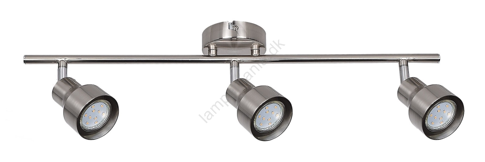 Det moderne spotlys Blake med 3 pærer er et fremragende valg til forskellige rum i din bolig: det kan monteres i stuen, soveværelset, spisestuen eller køkkenet. Dette helt metalbaserede armatur i satin krom kan fastgøres på væggen med en rund dekorativ base. De fleksible lamper er placeret på en vandret bærearm, som er fastgjort til den dekorative base. Med deres hjælp kan du nemt og effektivt oplyse hele rummet. Blake-armaturet kan anvendes med tre pærer med en effekt på op til 50W hver. Sokkeltypen er GU10. Afhængigt af din smag og installationssted kan du vælge varme eller naturlige hvide lyskilder. Dimensionerne på dette spotlys med 3 pærer er: bredde 580 mm, højde 145 mm, afstand fra loftet 120 mm. Denne model leveres uden lyskilde.