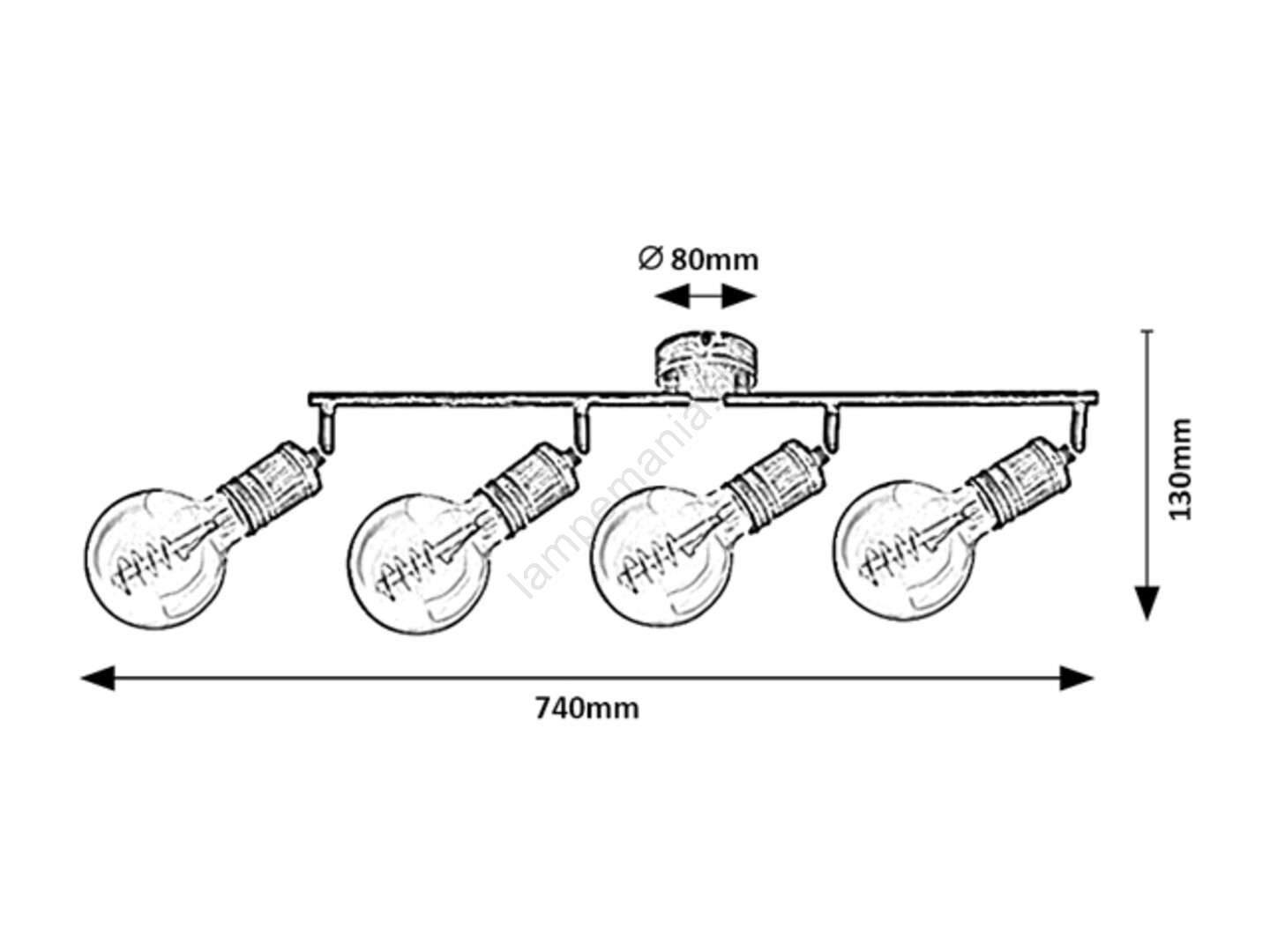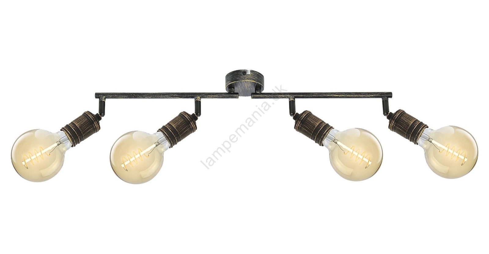 Spotlampen Fidel med 4 pærer i industriel stil kan være et fremragende valg til forskellige rum i din lejlighed: du kan montere den i stuen, soveværelset, spisestuen eller endda i køkkenet. Den antikke gyldne metalarmatur kan fastgøres til væggen med en lille rund dekorativ base. De 4 lamper er placeret på en bærende stang bestående af to dele og fastgjort til den dekorative base. Pærerne står frit. Fidel-armaturet kan bruges med 4 pærer, hver med en effekt på op til 25W. Sokkeltypen er E27. Afhængigt af din smag og installationssted kan du vælge varme eller naturlige hvide lyskilder til dette armatur. Takket være de fleksible lamper kan du rette lyset fra denne loftslampe efter dine behov. Dimensionerne på spotlampen Fidel med 4 pærer er som følger: bredde 740 mm, højde 130 mm, afstand fra loftet 115 mm, installationsdiameter 80 mm. Denne model leveres uden lyskilder.