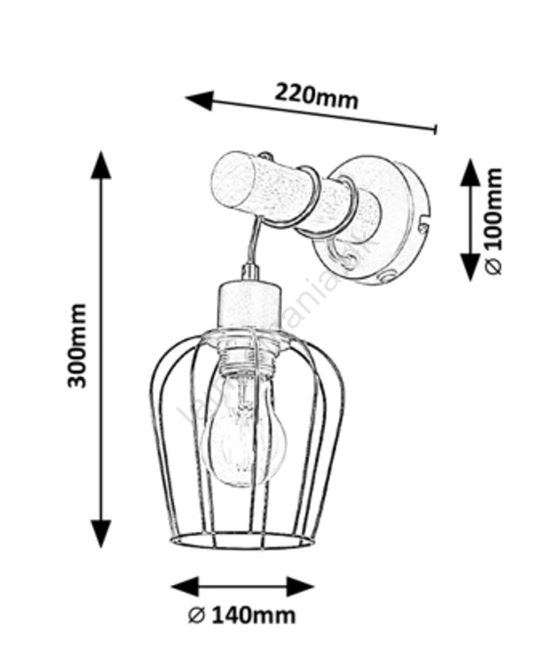 Væglampen Fabian i industriel stil vil være et unikt møbelstykke til stuen, spisestuen, køkkenet eller endda soveværelset. Denne model, bestående af en mat sort lampe og en skærm i samme farve, er fremstillet af metal og træ. Lampen kan monteres på væggen ved hjælp af en rund dekorativ base. Den dekorative base er forbundet med skærmen via en ledning, der er viklet og skjult i en træcylinder, hvilket giver modellen et råt og naturligt udseende. Lyset strømmer uhindret ud under skærmen, der minder om et bur. Fabian-lampen kan anvendes med en enkelt pære med en effekt på op til 40W. Sokkeltypen er E27. Hvis du ønsker et rent og klart lys i rummet, anbefales en pære, der udsender naturligt hvidt lys. Fabian-lampen kan betjenes via en kontakt placeret på den dekorative base. Lampens mål er som følger: lampens bredde og skærmens diameter er 140 mm, pærens højde er 300 mm, og afstanden fra væggen er 220 mm. Denne model leveres uden lyskilde.