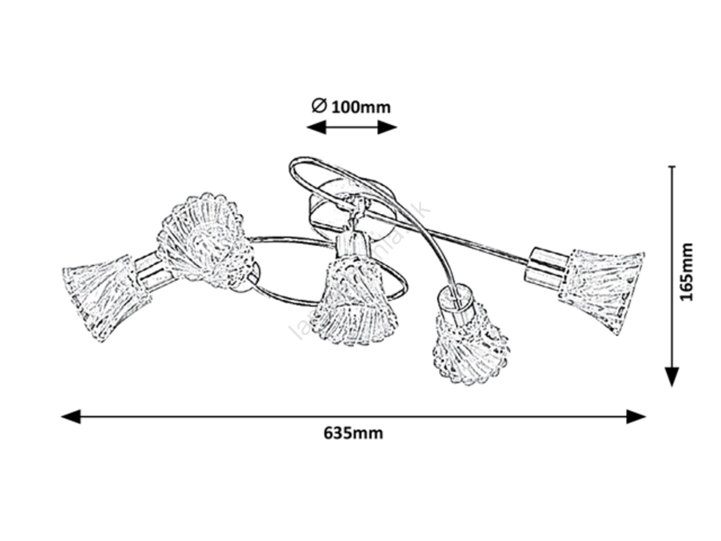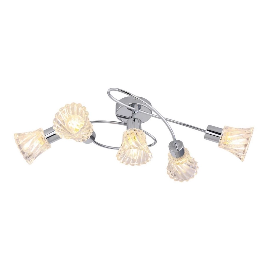 Spotbelysning Hestia med 5 pærer i klassisk stil vil være et elegant møbelelement i din stue eller soveværelse. Den kromfarvede metalarmatur, der minder om snoede ranker, er suppleret med gennemsigtige glasskærme. Armaturet kan monteres i loftet med en rund dekorativ base. Det interessante ved klokkeformede skærme er den snoede effekt på deres bølgede overflade. De fem lamper, der peger i forskellige retninger, sikrer tilstrækkeligt lys i alle dele af rummet. Denne loftlampe kan anvendes med fem pærer, hver med en effekt på op til 40W. Sokkeltypen er E14. Hvis du ønsker at forbedre en intim og hyggelig atmosfære, anbefales det at vælge varme hvide lyskilder til denne lampe. Dimensionerne på spotbelysningen Hestia med 5 pærer er som følger: bredde 635 mm, afstand fra loft 165 mm, installationsdiameter 100 mm. Denne model leveres uden lyskilder.