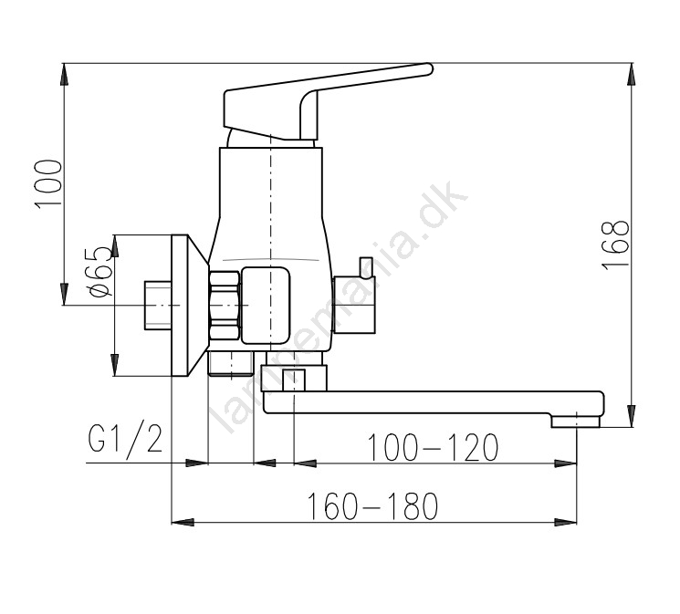 • Dækmonteret badekarbatteri med fladt, svingbart tud.