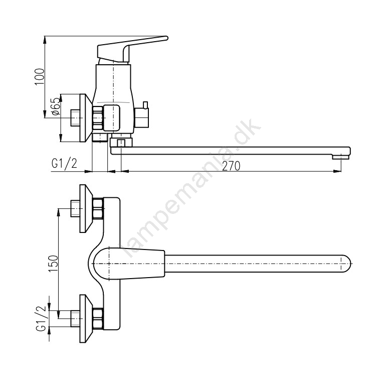 • Bordmonteret kar-/vaskarmatur med fladt, drejeligt udløb (længde 30 cm).