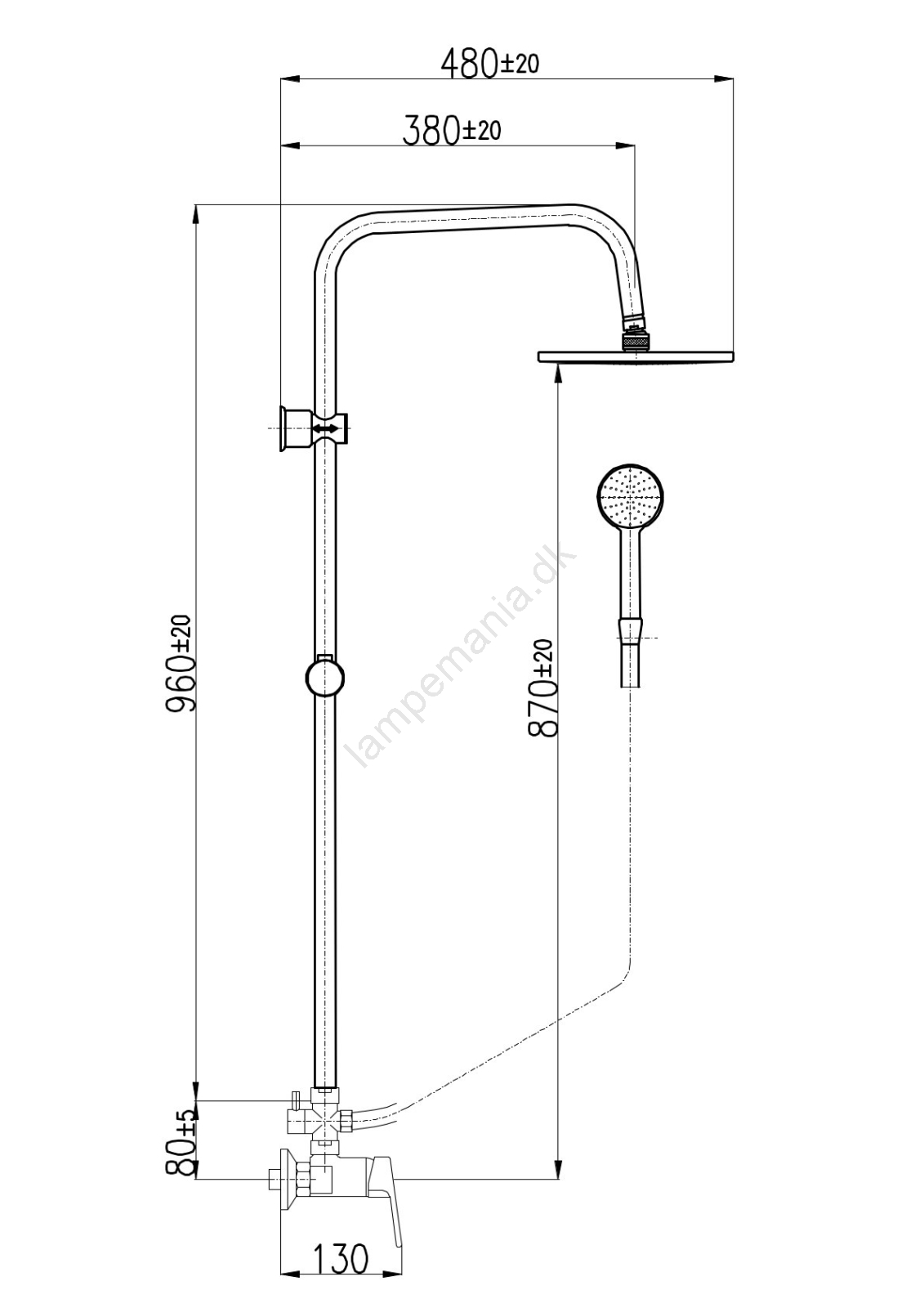• Sættet indeholder: brusebatteri, antikalk håndbruser med én funktionsindstilling, antikalk brusehoved (Ø 23 cm), metalbruseslange med dobbelt lås (længde 150 cm), brusestang med et vægbeslag.