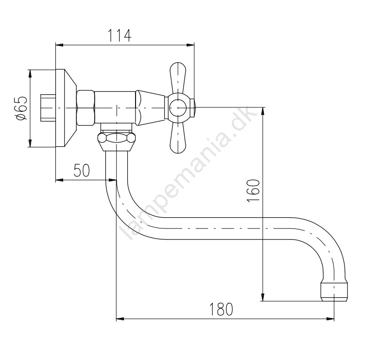 • Vægmonteret køkken-/håndvaskarmatur med rundt udløb 180 mm.